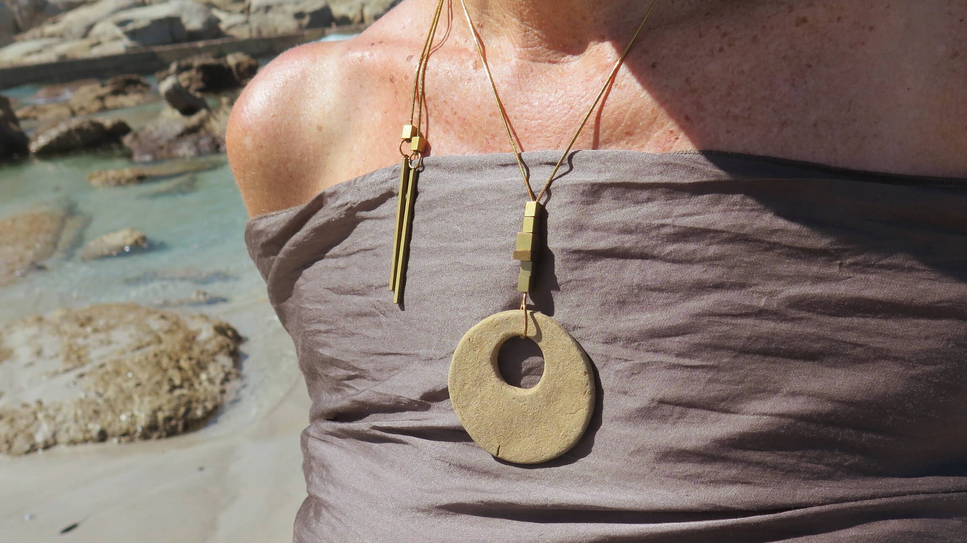 Wild stone | Adjustable length snake chain necklace | Raw brass and gold plate | Eclipse #1