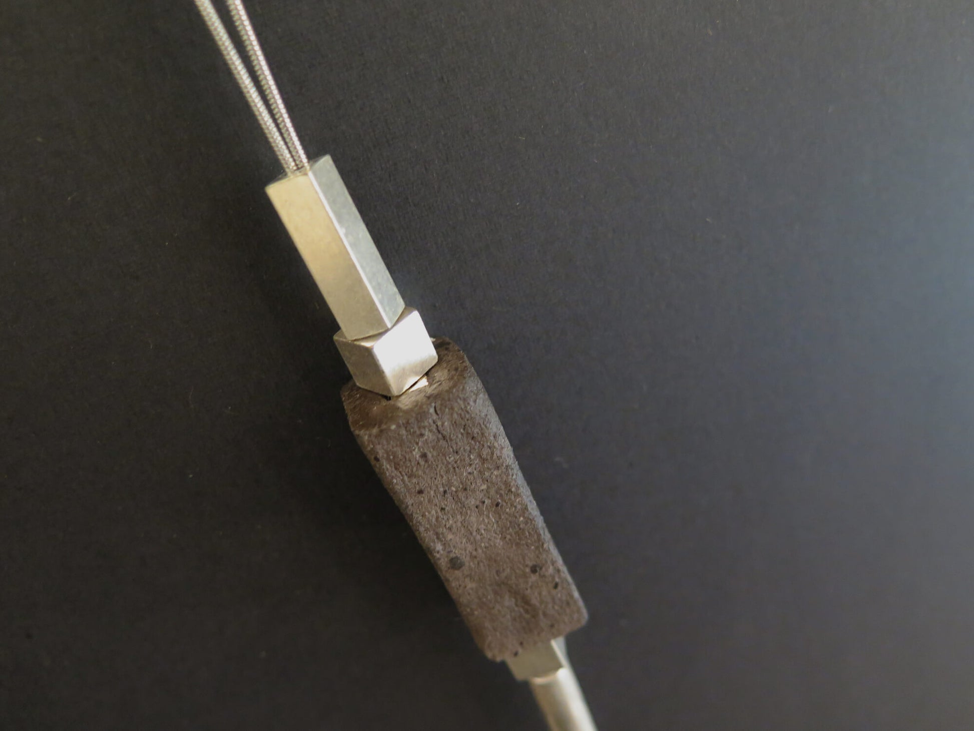Layered processes of blending, binding, wedging, kneading, curing, sculpting and finishing, create pendants with a natural stone texture, intentional irregularities, cracks and creases. Every piece is unique, handcrafted individually and no two pieces are the same.