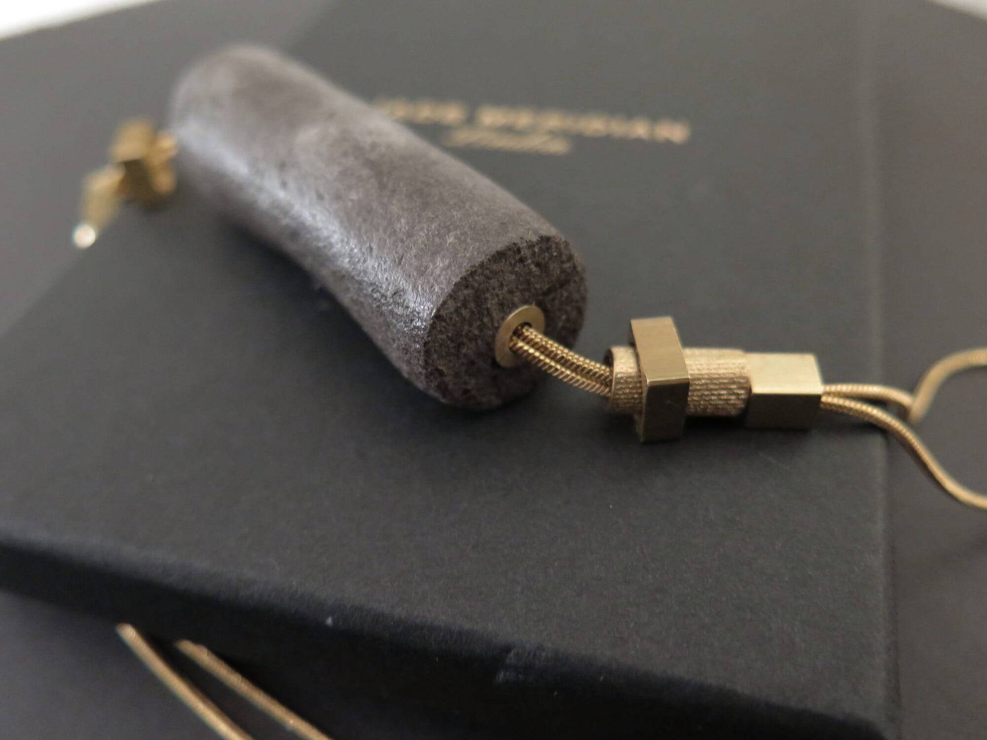 Layered processes of blending, binding, wedging, kneading, curing, sculpting and finishing, create pendants with a natural stone texture, intentional irregularities, cracks and creases. Every piece is unique, handcrafted individually and no two pieces are the same.